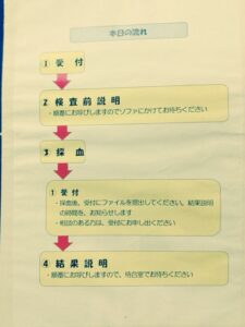 そんなことをしている間に番号が呼ばれ、本日の流れが書かれたファイルをもらいます。